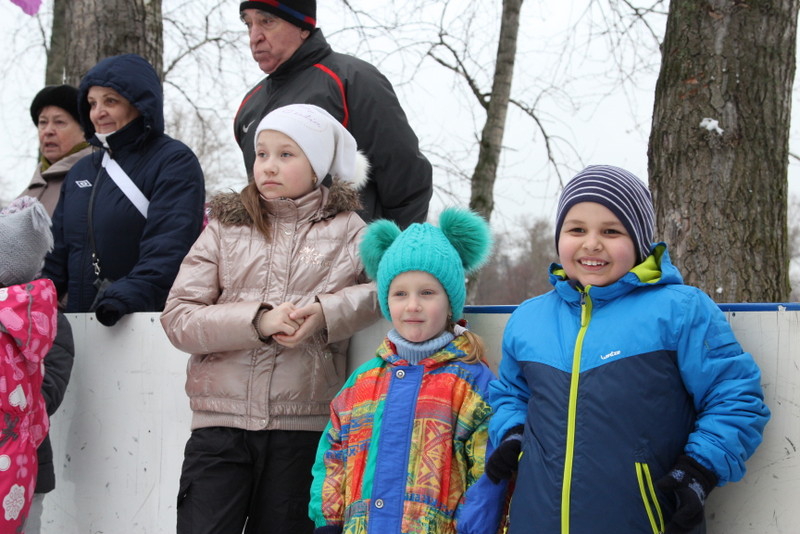 Затем началась спортивно-развлекательная программа, подготовленная сотрудниками досугового учреждения. Сказочные герои — Дед Мороз, Снегурочка, Баба Яга – сообщили ребятам, что для правильной встречи Нового года необходимо выполнить несколько заданий. Они загадывали загадки, проверяли на знание песен и стихов, а чтобы никто не замерз, предложили поучаствовать в эстафетах. Мальчишки и девчонки должны были как можно быстрее прокатиться по льду на корточках, пробежать между конусами, огибая препятствия. Самой забавной стала эстафета «Паровозик», где участникам нужно было преодолеть дистанцию всем вместе, двигаясь друг за другом. Начинающим спортсменам, которые пока не очень уверенно держатся на коньках, помогали родители.