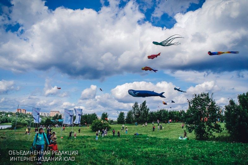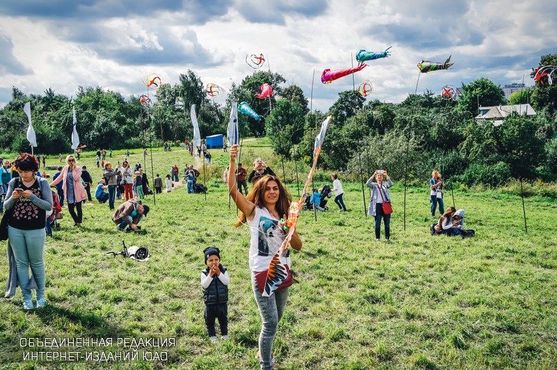 Здесь в очередной раз прошел большой фестиваль воздушных змеев «Пестрое небо», проведенный клубом Prokite. Его организаторы постарались не только рассказать о запуске воздушных змеях, как об одном из самых простых и одновременно оригинальных видов досуга на свежем воздухе, но и привлечь внимание к альтернативных источникам энергии, одним из видов которых является и энергия ветра. Именно поэтому ветреная погода, установившаяся в эти выходные в Москве, не только не помешала, но наоборот, помогла, подарив воздушным змеям возможность уверенного парения. И не только змеям – «наземная» часть территории фестиваля была украшена флюгерами, лентами, воздушными мобилями – всем тем, что оживает даже от самого легкого ветерка.