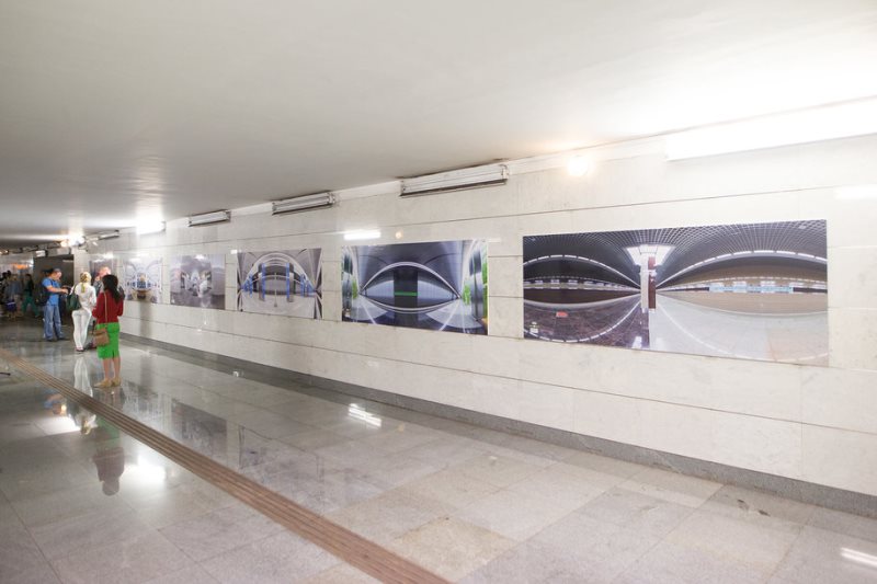 Открытие экспозиции было приурочено ко Дню рождения Московского метрополитена (15 мая) – в этом году столичной подземке исполняется 83 года. Представленные работы – 25 фотографий современных станций метро – выполнены в жанре панорамной съемки.