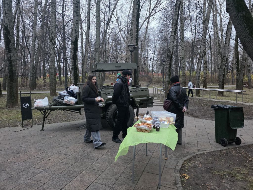 Для гостей мероприятия также организовали полевую кухню. В перерывах жители смогли подкрепиться и согреться горячим чаем.